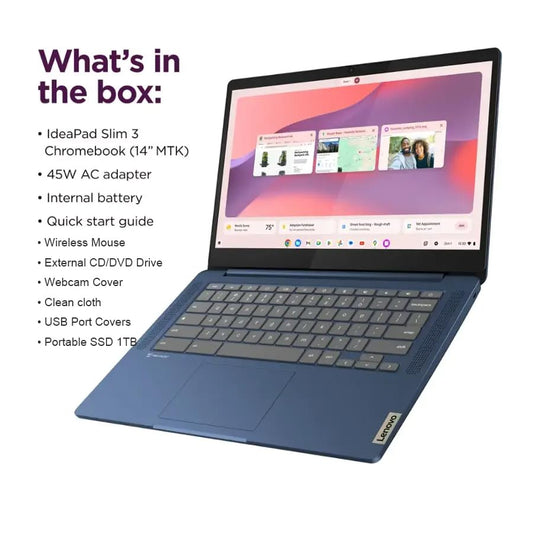 Lenovo IdeaPad Slim 3 Chromebook - 14'' Full HD (1920 x 1080) Display • 8-Core MediaTek Kompanio 520 CPU • 4GB RAM • 64GB eMMC & 256GB Micro SD Card • Wi-Fi 6 • for Business Student • Chrome OS • Blue(Renewed)